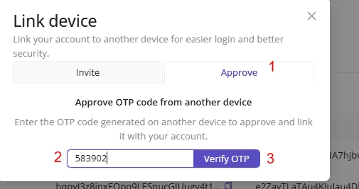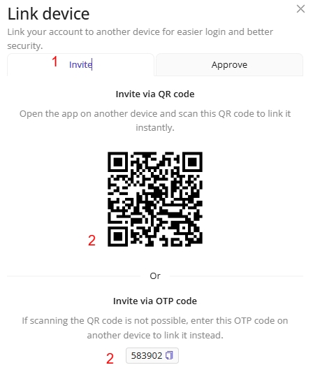 In the Invite tab, you can view the automatically generated QR Code and OTP.