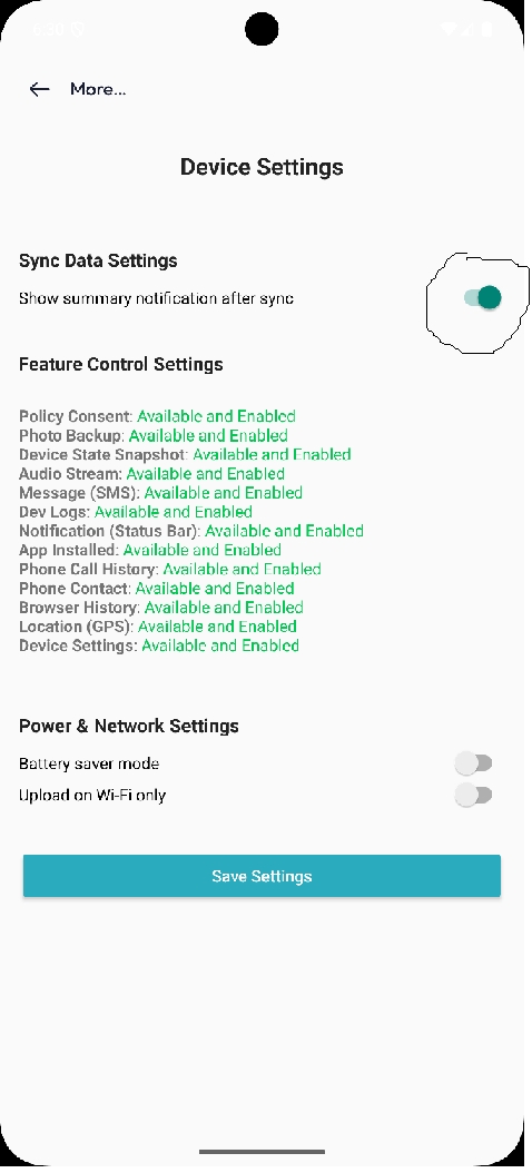 By default, the Agent App shows a summary notification on the Android status bar each time data is sent (synced) from the device to the server.